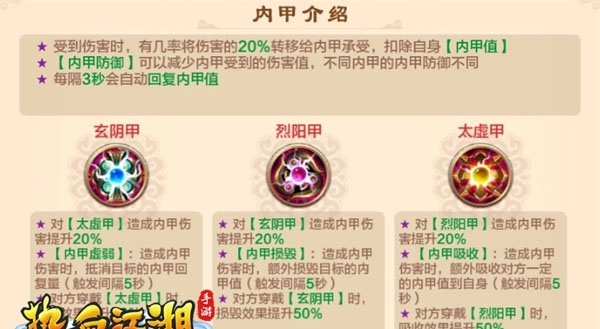 三个BOSS所穿的内甲各不相同,小伙伴们可依据玄阴克制太虚、烈阳克制玄阴、太虚克制烈阳的规律来更换自己的内甲。破甲后要记得及时更换,通常可以换成伤害较高的烈阳内甲,当BOSS第一管血打完时,就说明内甲已经被打破了。