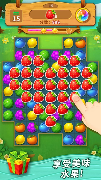 玩法十分简单,只需连接三个相同的水果,就能让您畅快消除。除了可以使用道具辅助外,还能依据游戏的闯关规则来发起挑战。这款游戏会为您带来更多趣味十足的消除体验,让您收获满满的乐趣。