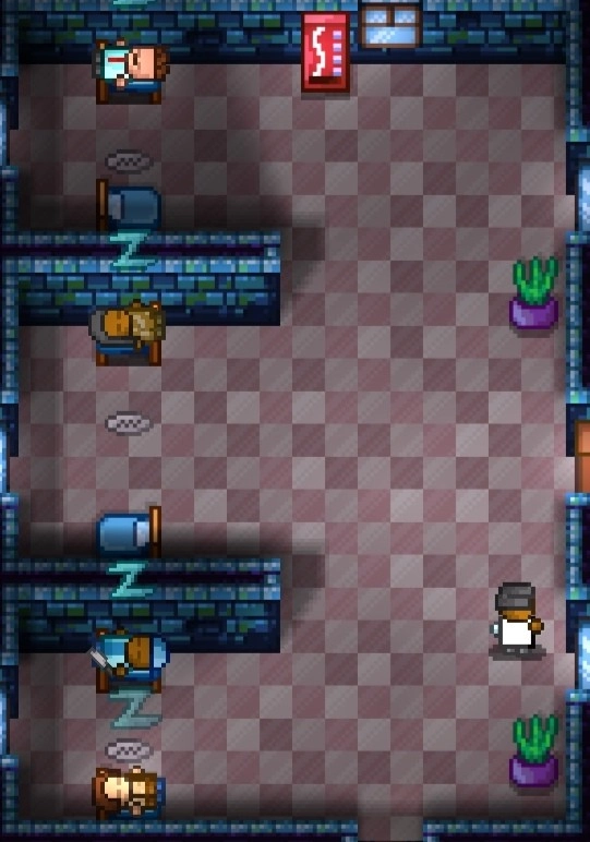 任务层面,首先要处理的是这类公开性质的房间,这类任务难度最低——进入房间后,即便不存在“错误建筑”,房主也不会对我们抱有敌意,最典型的例子就是店主。这类任务通常以取回道具或击败目标为核心:要是房间里只有店主一人,我们可以直接控制他到外面去和其他NPC产生冲突,任务就能轻松搞定;而如果房间里还有和店主结盟的打手,这类任务就需要我们运用卡视野的技巧了——得找个结盟者看不到的位置,比如角落或者房间外,只要发动特殊能力时的声响吸引结盟者注意的瞬间,他第一眼没发现我们,就不会触发敌对状态,之后再引导结盟者和店主产生矛盾,任务就能顺利完成。