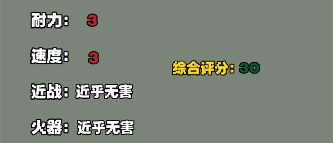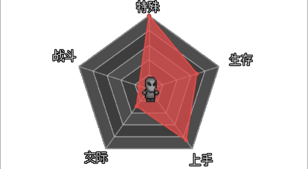 外星人在游戏里的属性设定相当特别:耐力与速度表现都很出色,整体能排到中上水准,但近战和火器能力却是全游戏垫底,没有任何角色能比它更弱——那数值低到近乎无害,直接导致这个角色的战斗能力几乎为零。毕竟外星人无法使用任何武器,哪怕喝了巨人药水或其他增益药剂,空手攻击的伤害始终只有1点。这也注定了外星人的玩法必须围绕自身特殊能力展开,属性加点的优先级是耐力高于速度。
