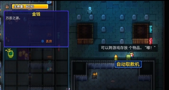 我们可以先选一个黑客,然后去自动取款机那里把翻译器存进去,接下来在下一层选择外星人,再花50金币把翻译器取出来。虽然自动取款机里的道具售价特别贵,但这个道具对外星人来说性价比却很高。有了交际能力之后,我们做任务也会更简单一些。