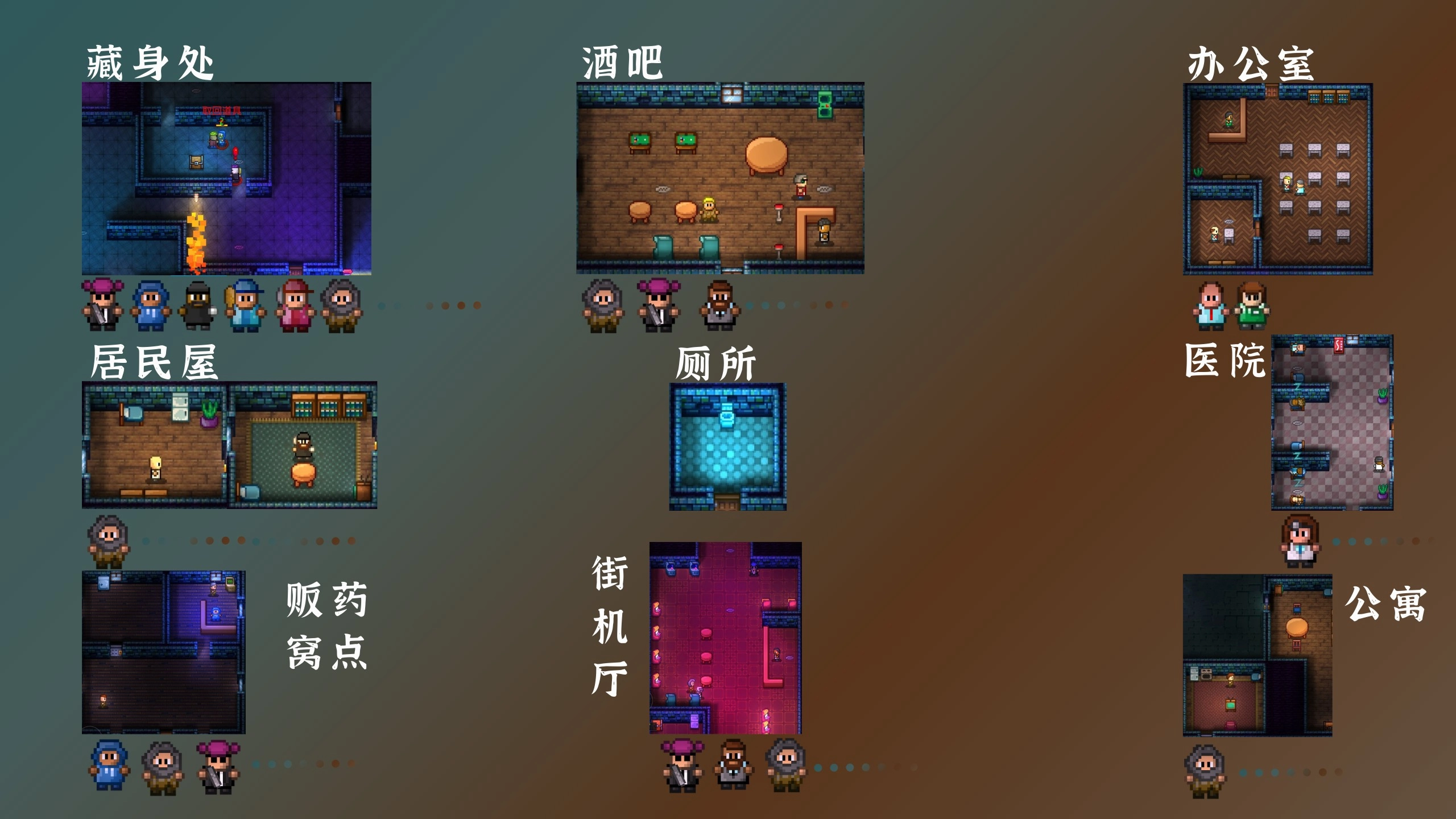 可能会刷新贫民、药贩、瘸帮、血帮、小偷、工人、科学家、黑客、医生、办公室职员等NPC