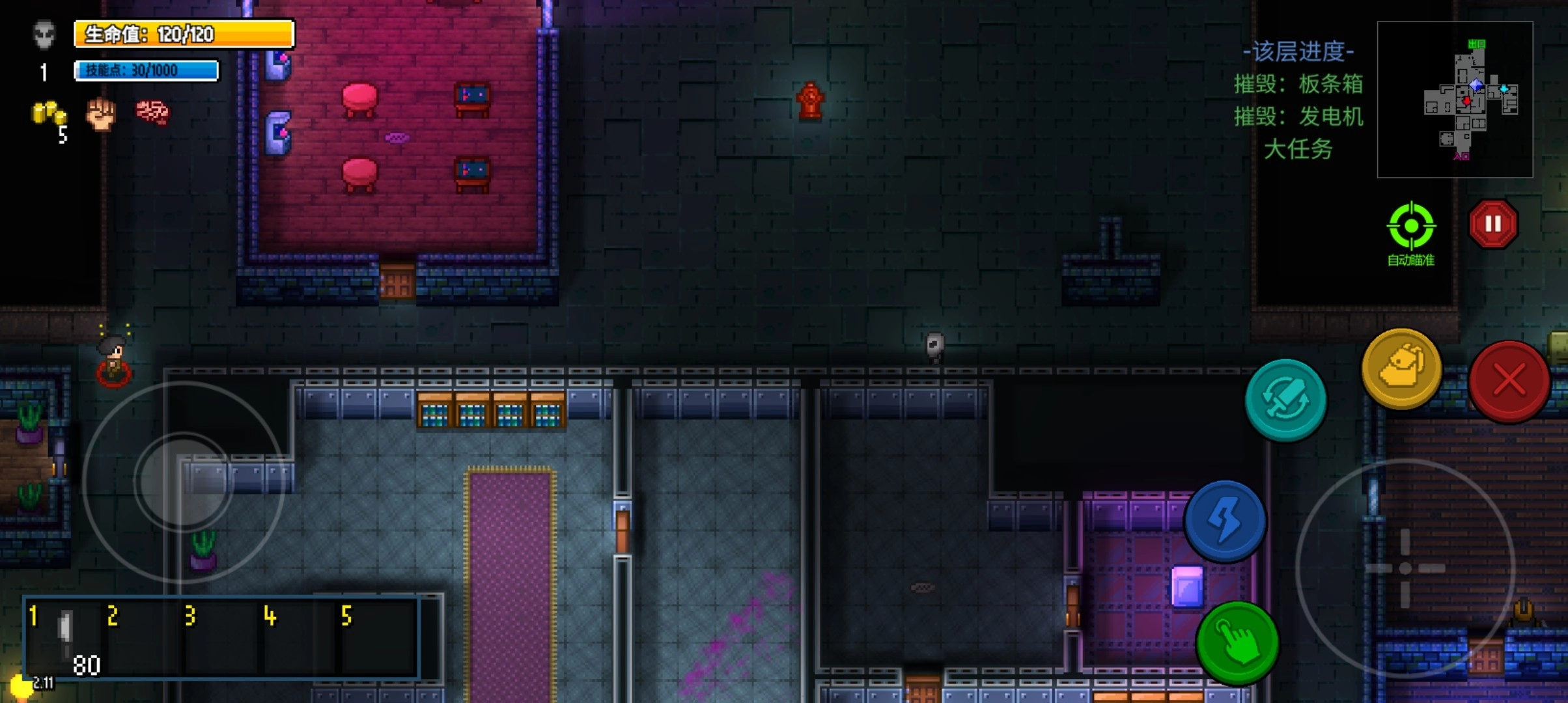 还有一种办法,相比前一种完成速度更快但风险更高——直接冲进房间,硬扛几下攻击,吸引所有NPC对你产生敌意,接着跑到角落,把特殊能力当作控制技能来用:先控住冲在最前面的NPC,再瞄准后面的疯狂点击攻击键。这种玩法适合前期和大后期:前期升级快,不怕掉血,能以更暴力的方式快速完成;后期把暴击无效升级后,能免疫不少伤害,加上房间里结盟的NPC数量多,卡在角落控住敌人后,能瞬间扭转局势。