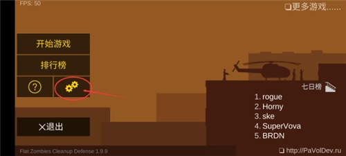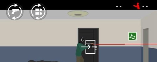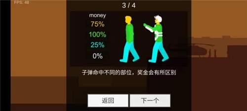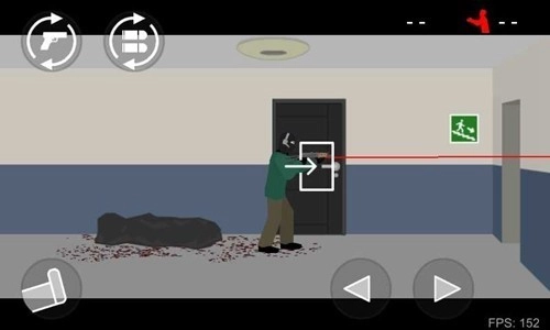 分别是向左走和向右走,左上角分别是切换武器和更换子弹,右下角的是一个保命技能,当僵尸靠近时,你可以通过踢腿动作将它踢倒或击退,游戏里最多能一次踢到两个僵尸,合理运用这个技能会让你轻松不少。另外要提一下,游戏中射击僵尸腿部一次可得2块钱,射击身体一次可得5块钱,射击头部一次可得10块钱,这似乎没什么问题。