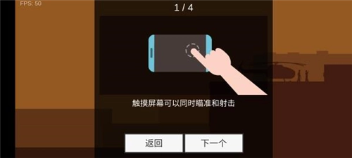 游戏的操作方式为:触摸屏幕即可完成瞄准与射击动作,而点击虚拟按键则能实现移动功能。