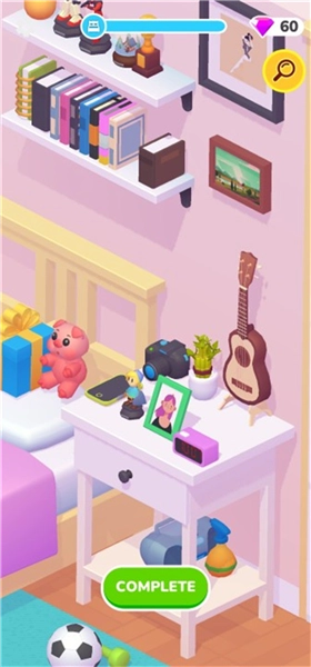 当把所有物品都放置妥当后,才能点击complete按钮进入下一关。