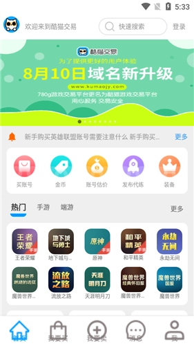 酷猫游戏助手App最新版是专门为用户提供游戏币充值、游戏账号登录、游戏福利领取等服务的游戏交易平台。平台致力于为大家打造便捷、安全的交易环境,让用户能够放心地进行游戏充值、账户交易等操作。为保障交易安全,助手采取了身份验证、交易监控、资金保护等一系列综合措施,并严格遵循交易规则,确保交易过程安全可靠。感兴趣的朋友不妨前来体验!