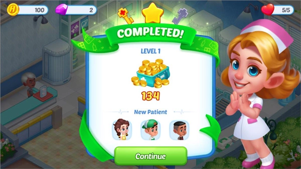病人离开后,由操控护士整理病床物品,完成关卡任务就能通关,通关后可获得金币奖励。