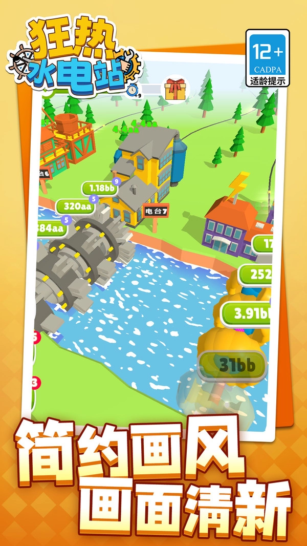 《狂热水电站》是一款挂机类休闲模拟经营游戏,致力于为玩家带来沉浸式的水电运营体验。在游戏中,玩家将身兼水电站所有者与水电工程师两重身份,通过积累收益来建造水车,不断升级各类设施、增建水车并拓宽河道,一步步打造出规模化的发电站,为村庄和城市提供稳定的电力供应,同时完成各项救援任务。游戏采用放置式经营模式,有效简化了操作流程,玩家能够全权负责水电站的维护与运营工作,独自享有经营所带来的收益,而游戏的核心目标就是让玩家通过盈利持续扩大水电站的运营规模!