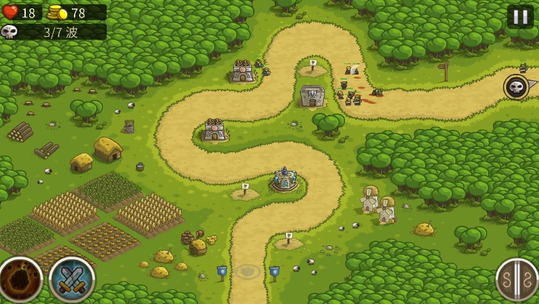 到第3波时我们会解锁一个援军技能,该技能冷却时间为10秒,持续效果也是10秒,能召唤两名士兵。建议冷却时间一结束就立即使用,并且可以把召唤出的士兵和兵营生产的士兵部署在一起。
