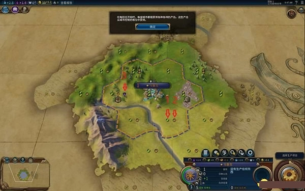 不过,要让每块土地都能产出资源,就必须配备足够的人口,至少得有1个。简单来说,每拥有一块土地,就需要一个人口单位来推动该地块的资源生产。