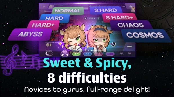 游戏内拥有丰富的曲目与插画资源:包含10首基础歌曲,加上可通过内购获取的歌曲,总数超过50首;每首歌曲都搭配了精心挑选的优质曲目内容与精美插画,让你在沉浸音乐的同时,也能领略到出色的视觉艺术魅力。