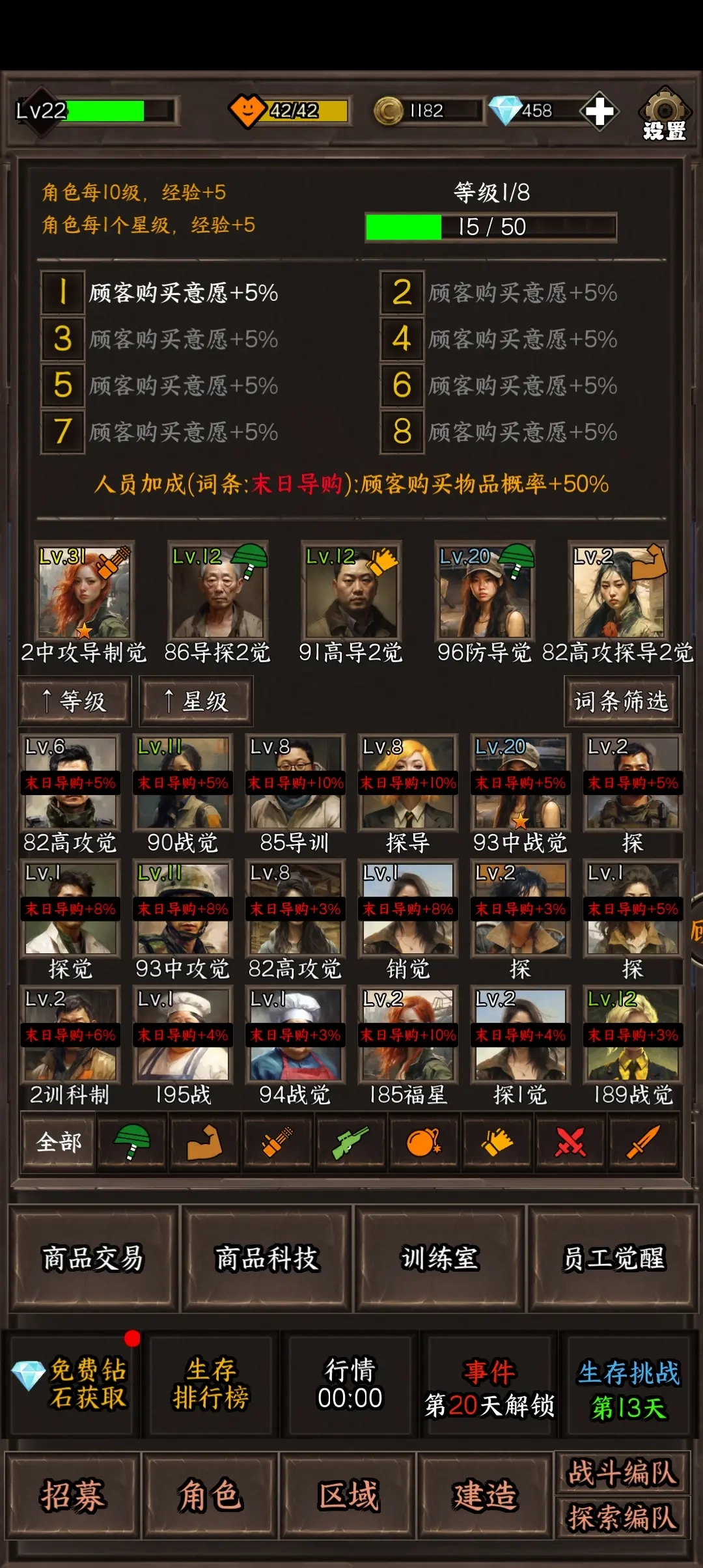 《我在末世开超市新秩序》是一款趣味十足的末世生存经营策略游戏。在游戏里,玩家将化身末世中的超市经营者。虽说在末世经营超市看似困难重重,但游戏将其简化为超市运营与强力员工管理两大核心玩法。其中,员工系统是游戏的重中之重,员工被划分为四大类别,每个类别都有着截然不同的功能定位。玩家需要合理培养并搭配各类员工,最终组建起强大的团队,去完成游戏中的各项任务与挑战。