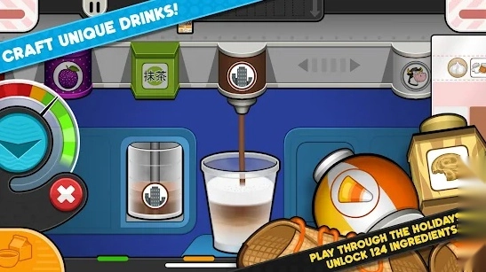 游戏里设置了丰富多样的定制选择:包含多种咖啡豆、不同类型的牛奶、各类糖浆、粉末、撒料以及装饰,玩家能够依据顾客的偏好来打造专属的饮品。