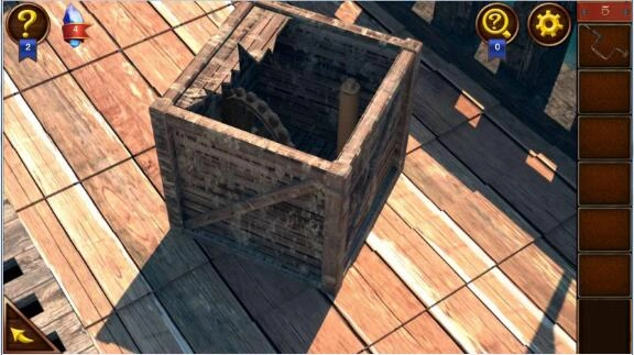 然后前往船身中部的旗杆处,把齿轮和摇把安装好,接着转动摇把。