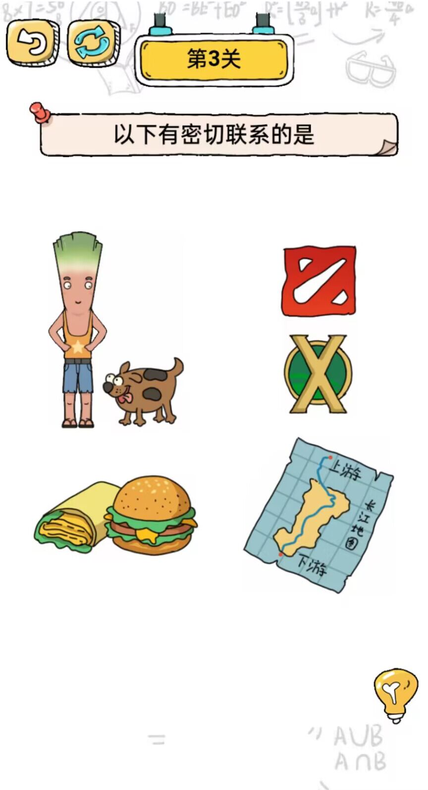 1、难度等级逐渐提高。遇到相当有难度的题目是时,玩家可以点击提示,以帮助自己轻松通过关卡。