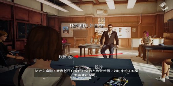 在场景里找到相机道具,用它完成自拍,与此同时留意场景中的物品和对话,以此知晓当前的剧情信息。