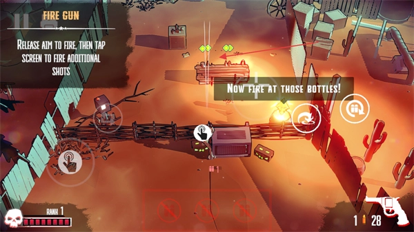 按照提示松开按键进行开火,之后点击屏幕补充射击,攻击目标瓶子以达成任务要求。