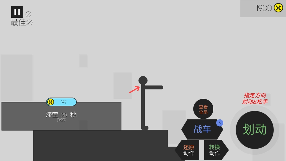游戏屏幕右下角设有一个按钮,玩家能够通过控制按住按钮的时长来调节力度,当以最大力度按下该按钮时,火柴人便会被玩家击败。