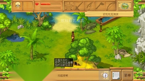 在与世隔绝的孤岛上搜寻并采集木材、石块、水果这类基础物资,以此为生存与建造筑牢根基。