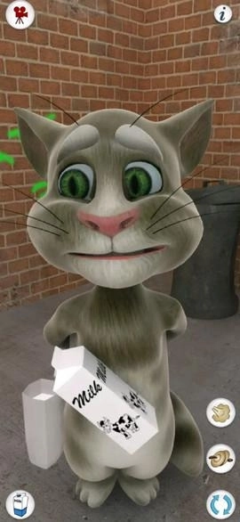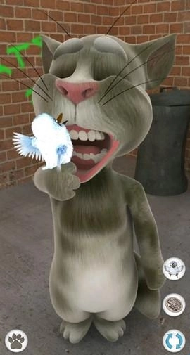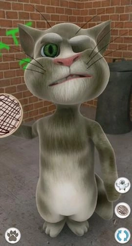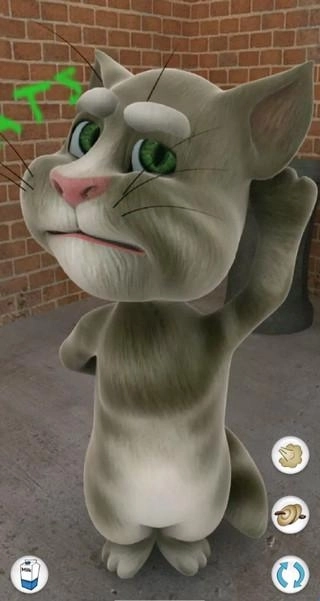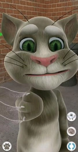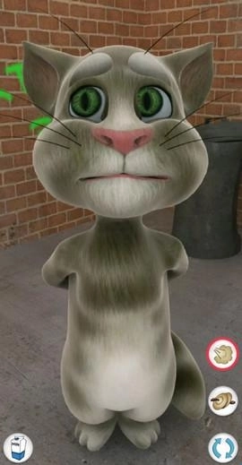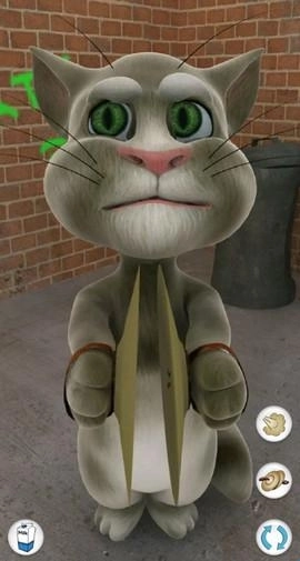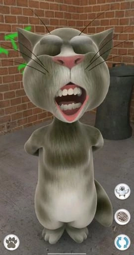 对汤姆猫说话,他会用滑稽的声音重复你说的话。