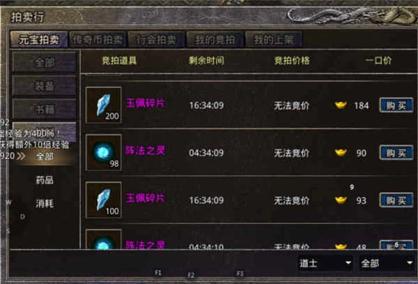 拍卖行每天会不定时刷新上架各类材料,其中包含大量玉佩碎片与阵法之灵,这是快速获取这两种材料的重要途径。