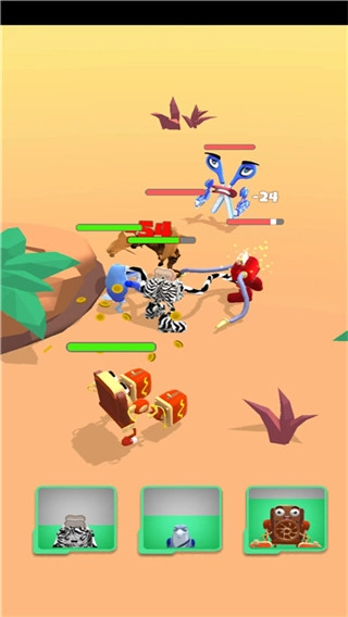 融合大作战是一款充满趣味的益智休闲大乱斗游戏。玩家可以通过合成各种事物来创造角色,比如将生物与电器融合,打造出想象中的独特形象。在奇幻的地图场景里,玩家能参与多人激烈混战,体验全新玩法带来的十足乐趣。游戏中所有物品都能作为融合材料,把合成物放进熔炼锅,甚至用动物和矿石进行融合,就能得到既让人畏惧又不失可爱的异形格斗士。接着将这些格斗士派上拳击场,与其他恐怖的卡通怪物对战,看看哪种看似不可能的元素组合能脱颖而出,成为战斗力最强的存在。此外,游戏玩法十分简单,玩家只需将不同物品结合,就能合成强大的勇士,还有机会解锁隐藏角色。释放内心疯狂科学家的人格,把身边的一切都扔进锅里,然后毫不犹豫地踏上战场,尽情享受数小时的疯狂动作场面与冒险时光吧。