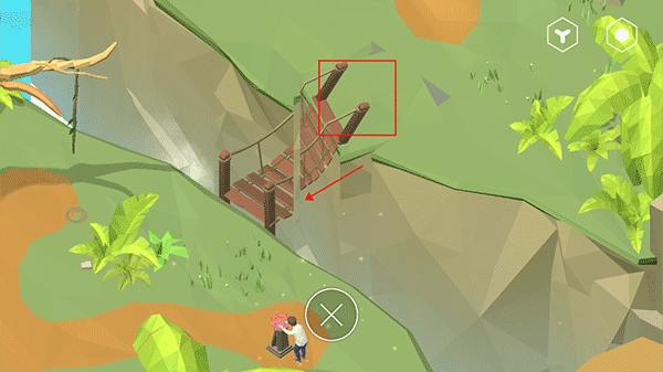 在屏幕上向左或向右滑动来控制移动,当把上方草地上的桥拼接完整后,就能到达对面了。