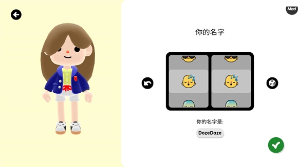 创建完角色后,你可以挑选自己的日常状态,滑动图标就能更换名称,既可以自行选择,也能随机生成,选好之后点击绿色按钮确认即可。