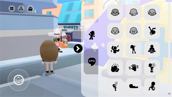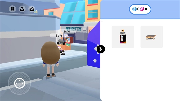进入小镇后会出现全新界面,左上方的衣架图标可用于更换角色形象,手提包图标则能进行服装购买操作。