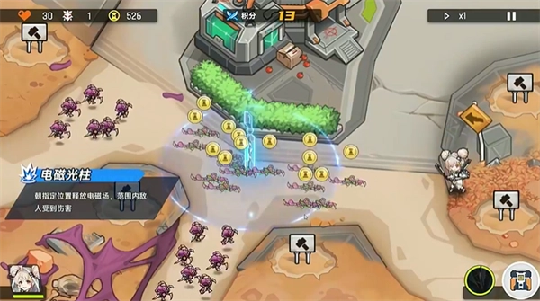 1技能:电磁光柱:向指定位置释放电磁场,对范围内的敌人造成伤害