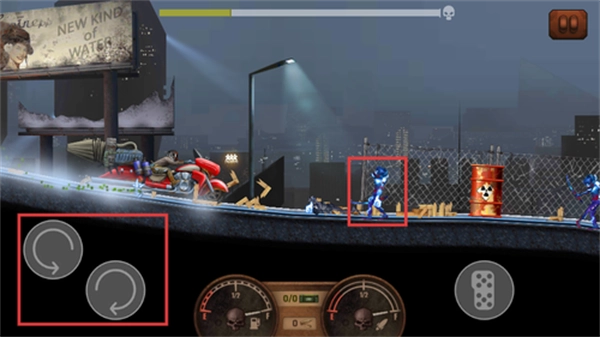 2. 驾驶途中得主动去冲撞路上的僵尸群来赢取分数奖励,不过得留意别以高速撞上大型障碍物,不然会车毁人亡。