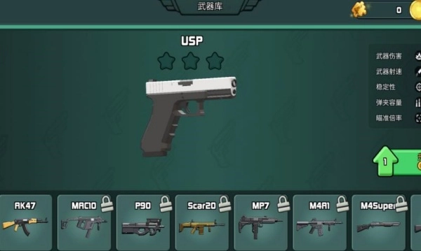 2、通过游戏币购买武器并进行升级,能够解锁更多强力武器,不再局限于从手枪开始起步。
