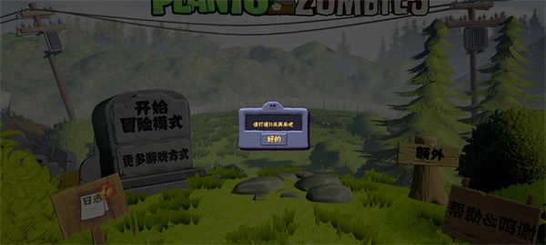 1、启动植物大战僵尸3D版,点击“开始冒险”选项,开启你的防御征程。
