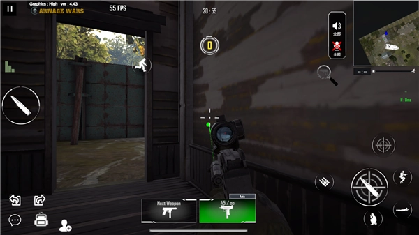 8、左侧负责移动控制,右侧用于瞄准射击,这和多数FPS游戏的操作逻辑一致。