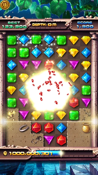 3、玩法和三消相近,需通过三个相同的宝石完成消除操作;