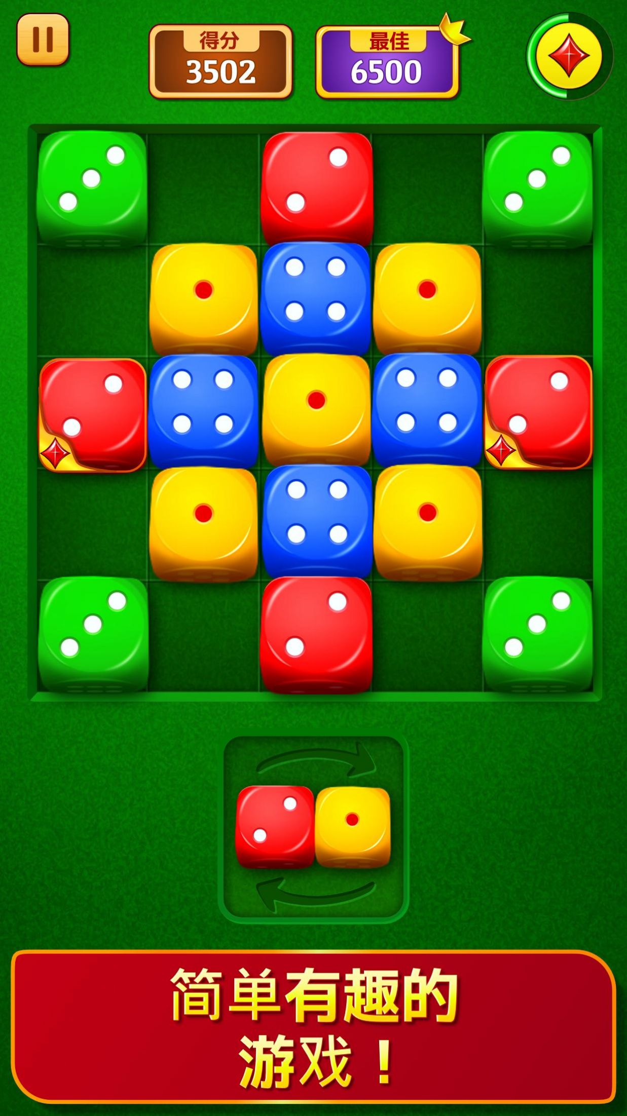 骰子拼图骰子合并是一款休闲的拼图挑战游戏,游戏挑战的过程十分的休闲,玩家需要将颜色相同的骰子放在一起合并,挑战的过程很有趣,形成一个全新的色子。看似简单,其实需要玩家努力思考才能合并完成,喜欢的小伙伴来一起试试看吧。