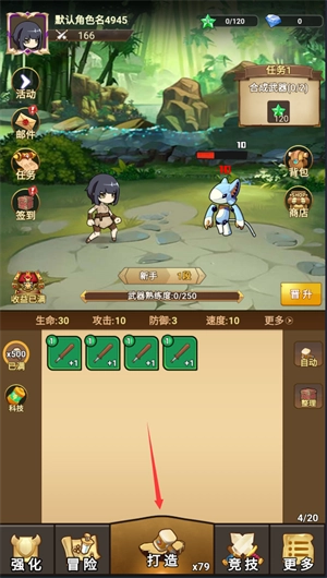 1、点击打造即可获取装备进行攻击