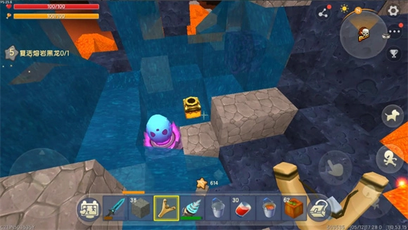 4、当熔岩黑龙向下俯冲发动突袭时,会将临时堡垒冲毁。如果不幸死亡,就用星星复活,然后重新卡到水柱下方进行反击。空水桶还能用来收集岩浆,将其倒入水中就能变成黑曜石,以此加固临时堡垒。只要确保自己站在水柱里,就能减少熔岩黑龙对你造成的火焰伤害,接着用弹弓慢慢攻击,就能把黑龙击败。