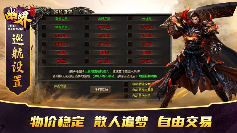 幽界合击,180星王极品合击版传奇。上线即可免费领取合击技能,跟着新手指导走,花几分钟就能快速熟悉游戏内容和玩法。游戏里有超多地图供玩家探索,所有地图都能自由进入,只要多花时间下地图打怪,就能获得自己想要的一切,散人玩家也能逆袭成大佬。