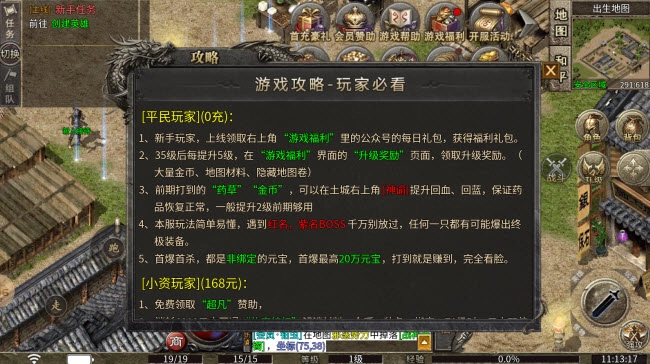 4、本服务器的玩法简单易上手,要是碰到红名、紫名的BOSS可千万别错过,每一只都有几率掉落终极装备。
