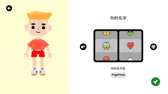 5、角色创建完成后,需确定玩家的名字,该名字既可以随机生成,也可以自行选择,选好后点击绿色按钮即可确认。