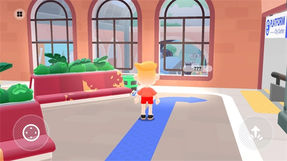7、进入后左侧控制角色移动,右侧控制跳跃,将角色移动至下方大厅并进入列车,即可进入城市。