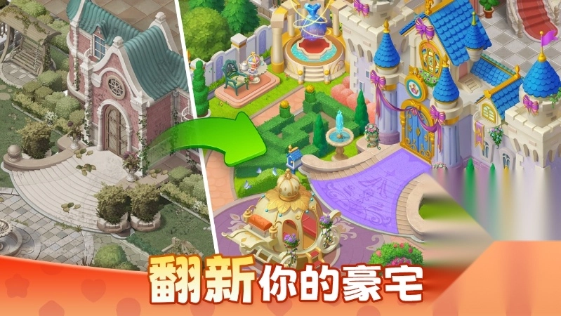 - 创新玩法:通过闯关达成任务,打造独属于你的豪宅与花园