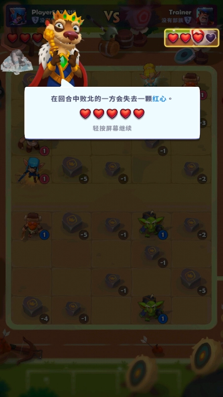 3、在回合中败北的一方会失去一颗红心。