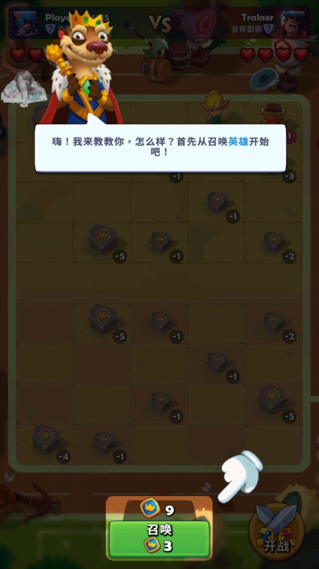 2、根据上方的提示开始点击召唤英雄。
