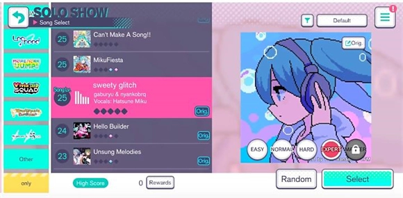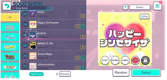 2、部分歌曲设有五个难度层级,按从易到难的顺序依次是EAZY(简单)、NORMAL(正常)、HARD(困难)、EXPERT(专家)以及MASTER(大师)。需要留意的是:MASTER(大师)难度的解锁条件为通过EXPERT(专家)难度,且过程中GOOD及以下的判定次数不超过7次。通常情况下,判定等级越高,得分相应越高;COMBO(连击)数越多,得分也会越高,此外这还与演出角色的技能触发存在关联。