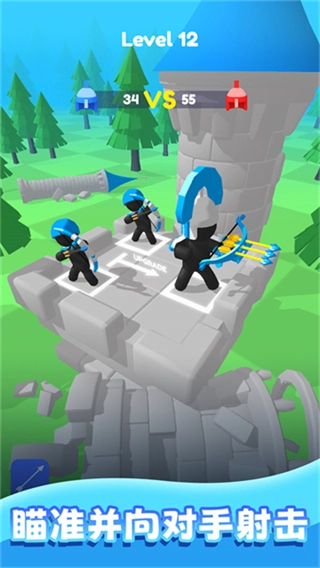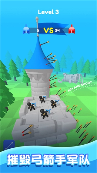 3、发射箭矢攻击敌方城堡上的目标,推进战斗进度。