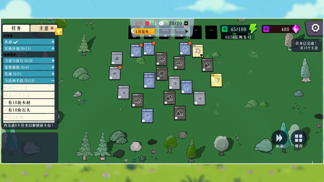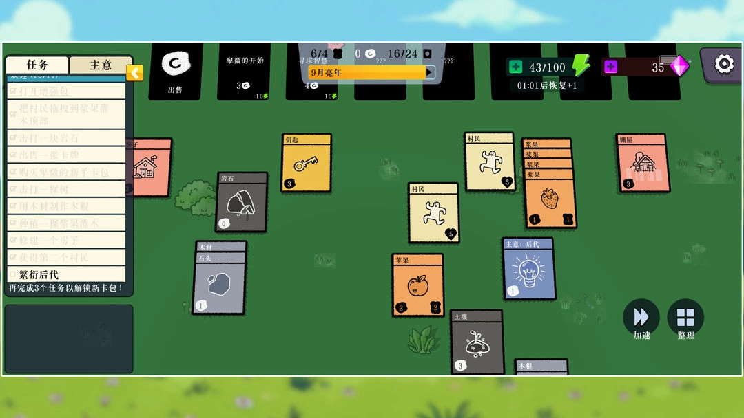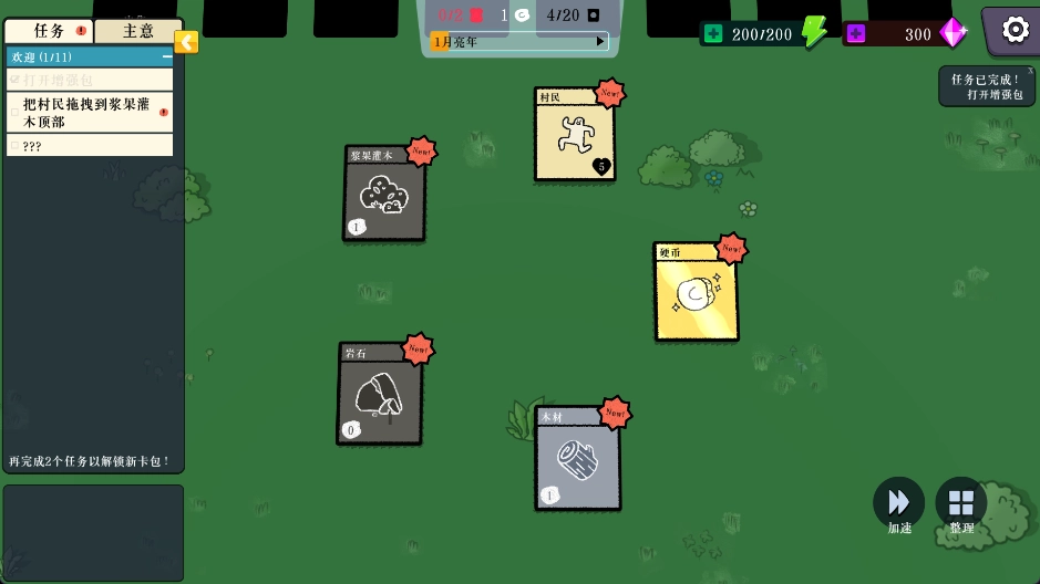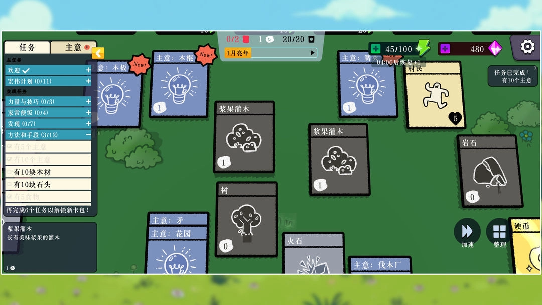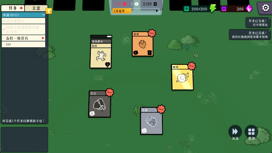 4、当卡牌上方的进度条填充完毕后,就会产出浆果,接下来请依据左侧的任务提示继续推进游戏进程。