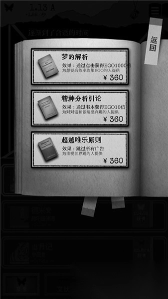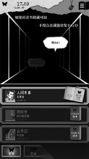 5.这时候玩家可以选择阅读书籍,或者继续点击白色对话框来获取更多ego,收集完成后就能解锁更多著作了。